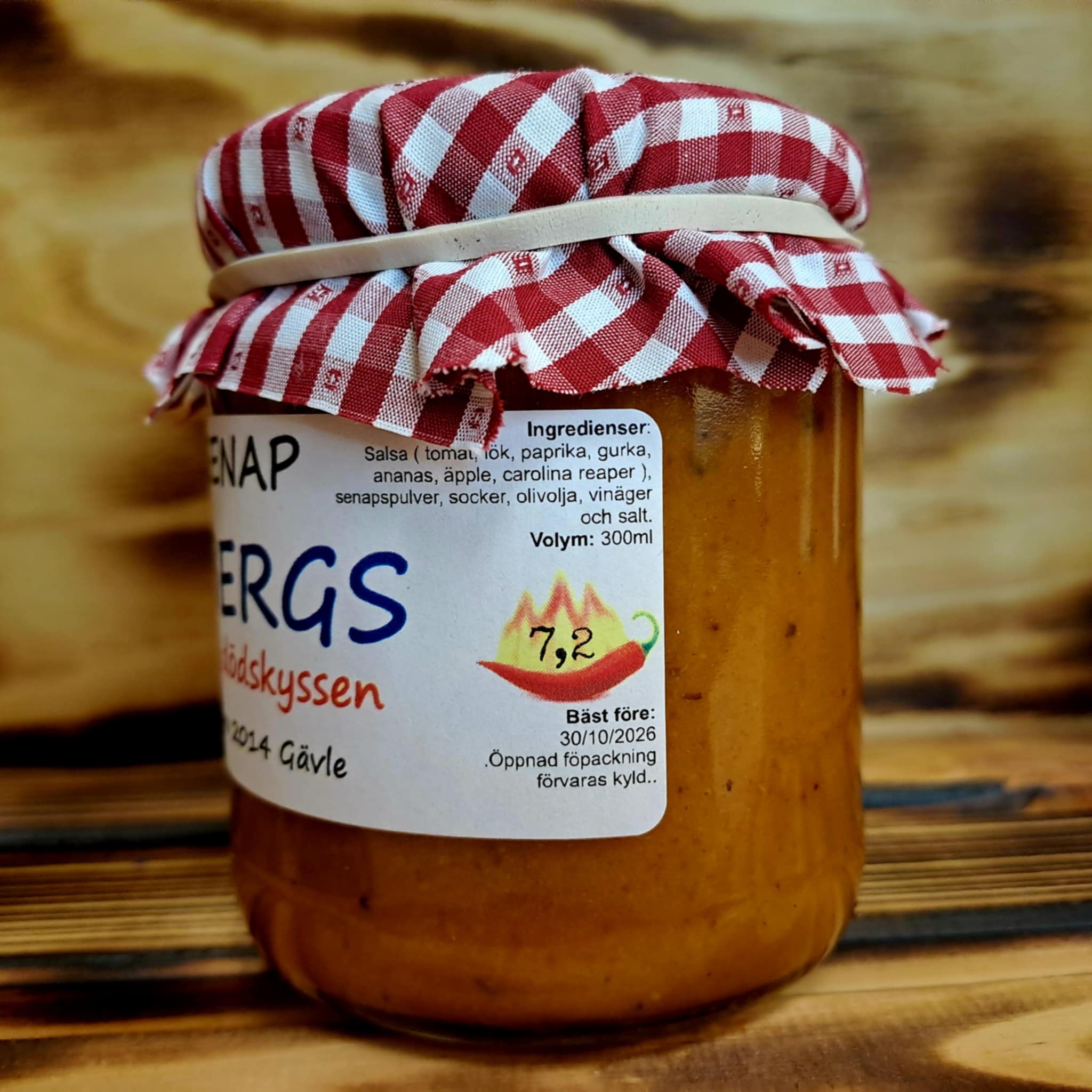 Vår senap bjuder på en spännande smakresa – söt, stark och full av karaktär! Genom att använda salsa Dödskyssen som bas – vår egen hetsalsa gjord på den legendariska Carolina Reaper – får senapen en perfekt slät och fyllig konsistens med en kraftfull chilihetta som verkligen känns.